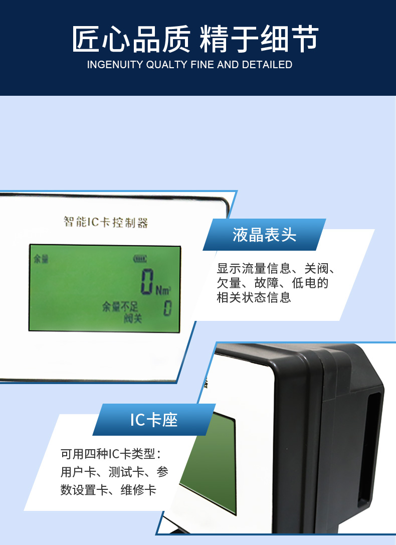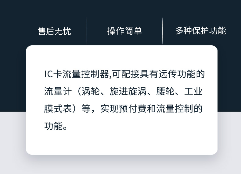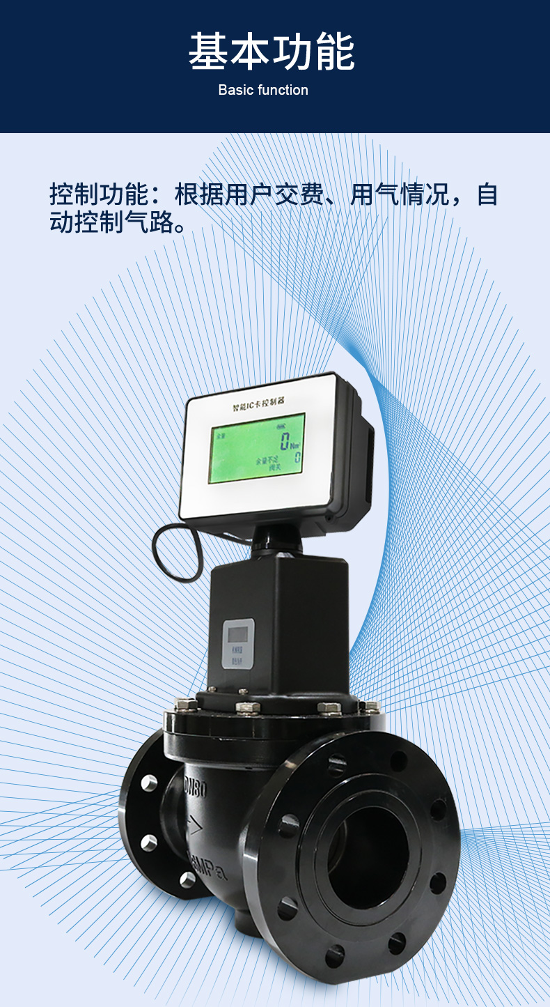本控制器由新型微功耗電動(dòng)燃?xì)忾y門和IC卡收費(fèi)系統(tǒng)組成??膳浣泳哂羞h(yuǎn)傳功能的流量計(jì)(渦輪、旋進(jìn)漩渦、腰輪、工業(yè)膜式表)等,實(shí)現(xiàn)預(yù)付費(fèi)和流量控制的功能。