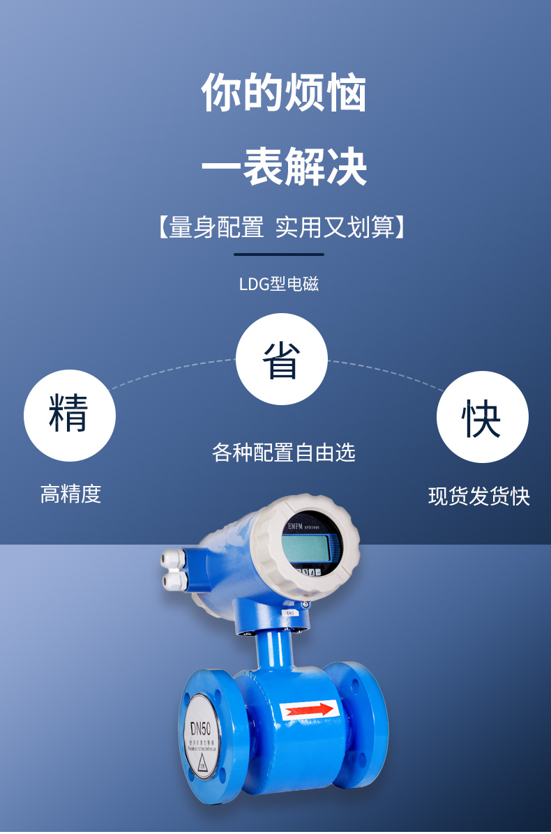 電磁流量計(Electromagnetic Flowmeters,簡稱EMF)是20世紀50~60年代隨著電子技術的發(fā)展而迅速發(fā)展起來的新型流量測量儀表。 它是應用電磁感應原理, 根據(jù)導電流體通過外加磁場時感生的電動勢來測量導電流體流量的一種儀表。